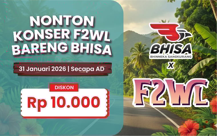 BHISA.ID — Bhisa kembali menghadirkan pengalaman perjalanan yang lebih bernilai lewat kolaborasi spesial bersama F2WL 2026 : FESTWOMORA. Melalui kerja sama ini, Bhisa memberikan diskon tiket khusus bagi customer Bhisa yang ingin menghadiri acara F2WL yang akan digelar pada 31 Januari 2026 di Secapa AD, Bandung.
