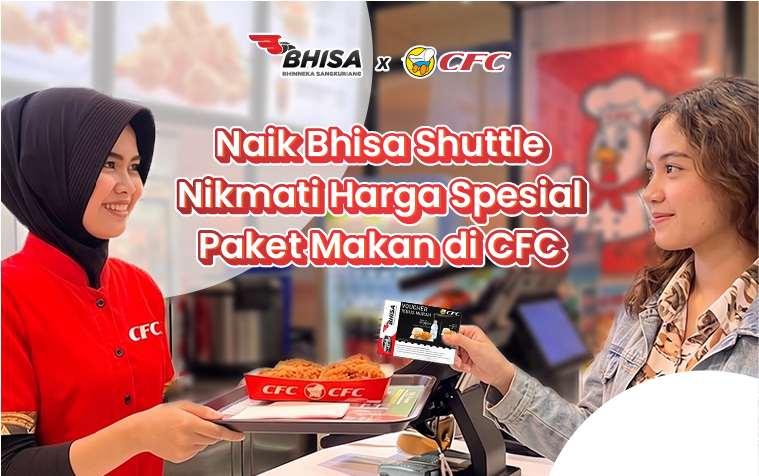 BHISA.ID — Perjalanan kini bukan hanya soal sampai tujuan, tetapi juga tentang kenyamanan dan pengalaman yang menyenangkan. Bhisa Shuttle berkolaborasi dengan CFC (California Fried Chicken) untuk para customer dengan memberikan harga spesial paket makan di CFC.