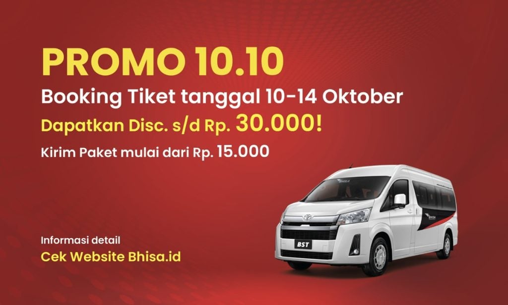 Dalam rangka pembukaan pool baru ini, Bhisa ngasih promo spesial Grand Opening buat kamu yang beli tiket mulai tanggal 10 sampai 14 Oktober 2025. Kamu bisa dapetin potongan harga hingga Rp30.000 untuk keberangkatan dari Point Cibiru, Virtual Point Gede Bage, dan Virtual Point Denhaag Cipacing mulai tanggal 17 Oktober 2025 dan seterusnya.