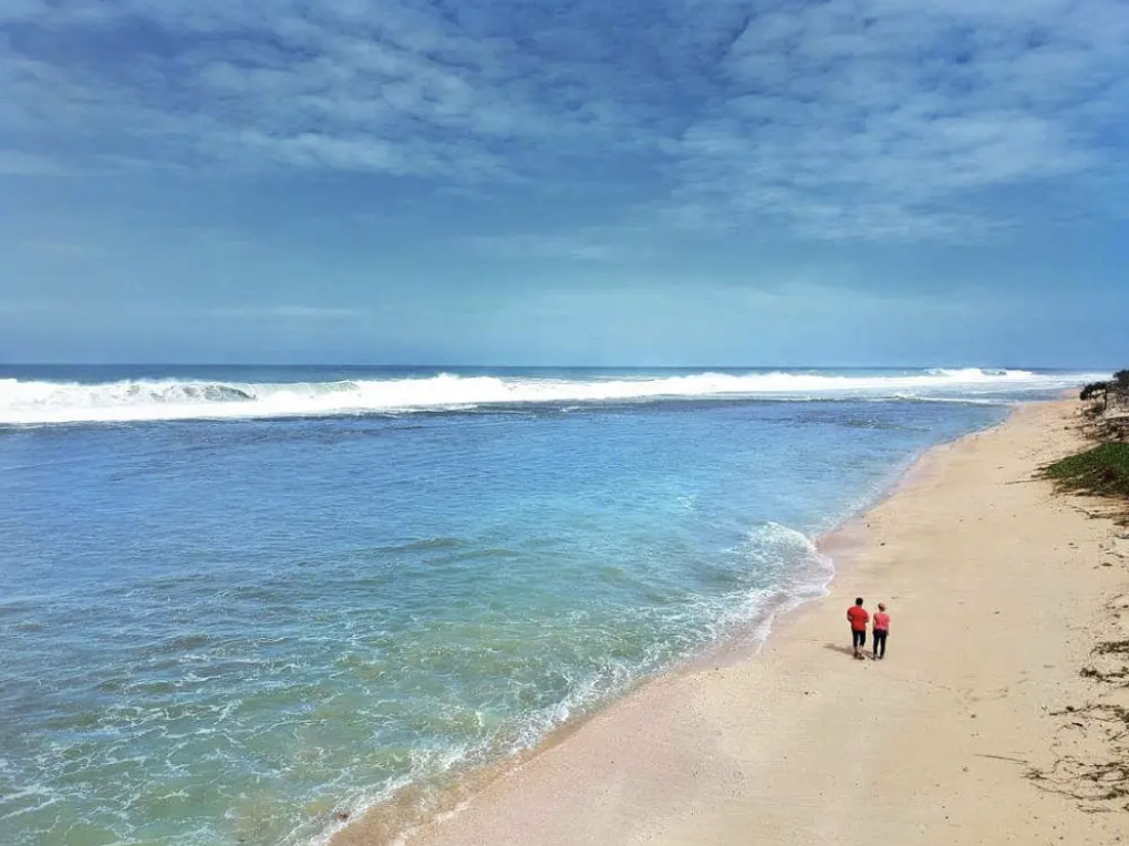 Yang paling khas dari pantai ini adalah landscape-nya yang luas dan datar, cocok banget buat jalan santai, piknik bareng teman, atau sekadar rebahan sambil menikmati suara ombak. Saat sore, warna langitnya berubah perlahan biru, oranye, hingga ungu sehingga menciptakan sunset yang lembut dan romantis.